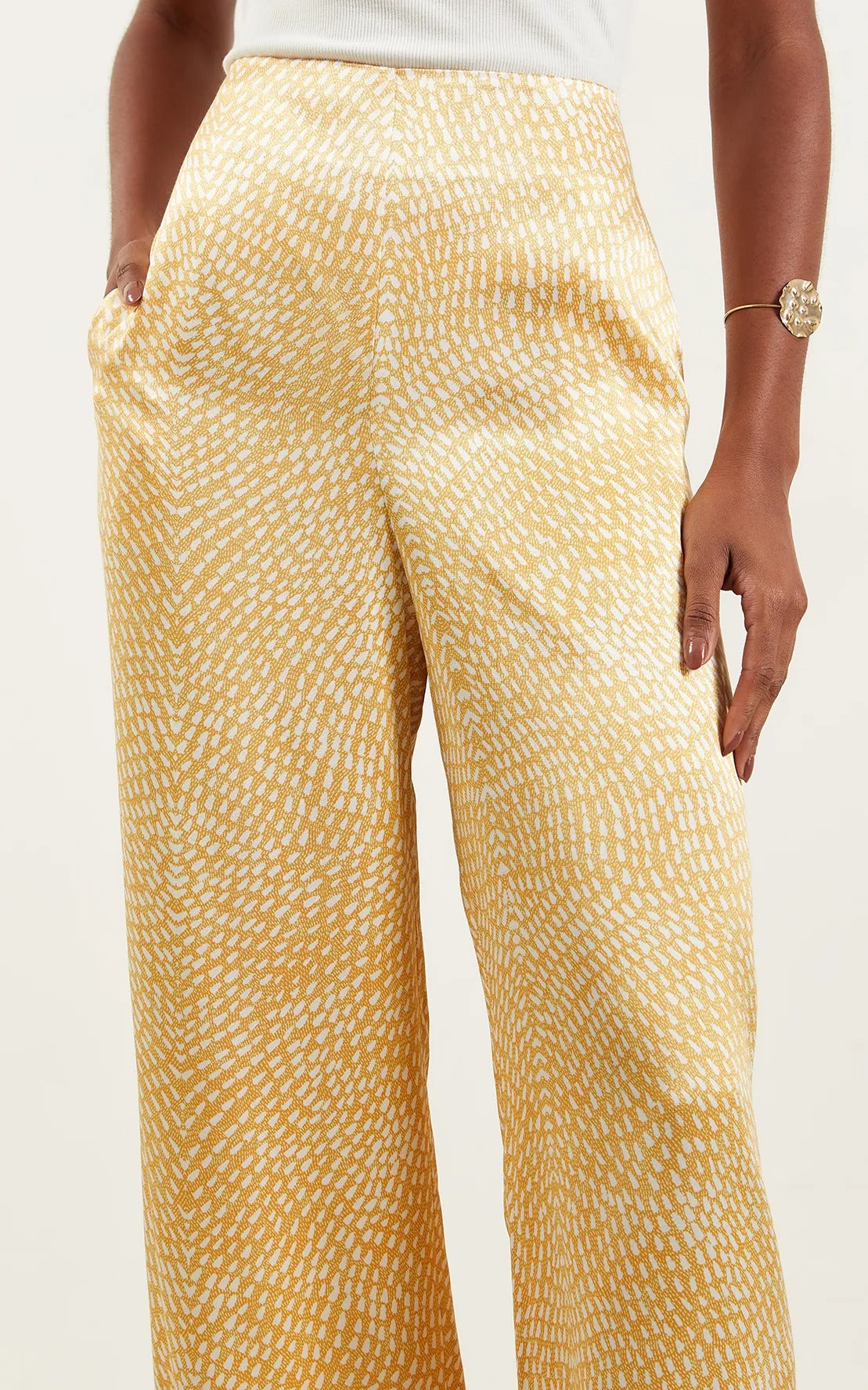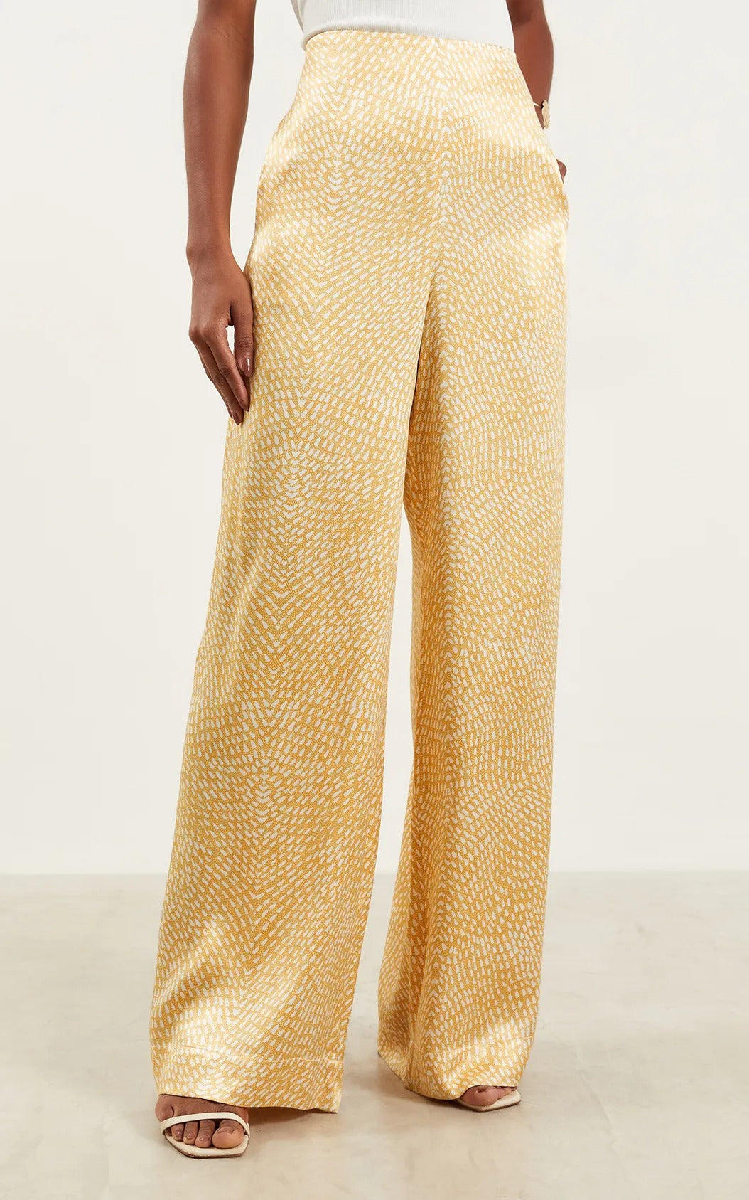 Women's satin blend printed wide-leg pants. High waist design, front pockets and hidden back zipper. Wide-leg trouser legs. The elegance and sophistication brought by satin fabric is worth choosing.
