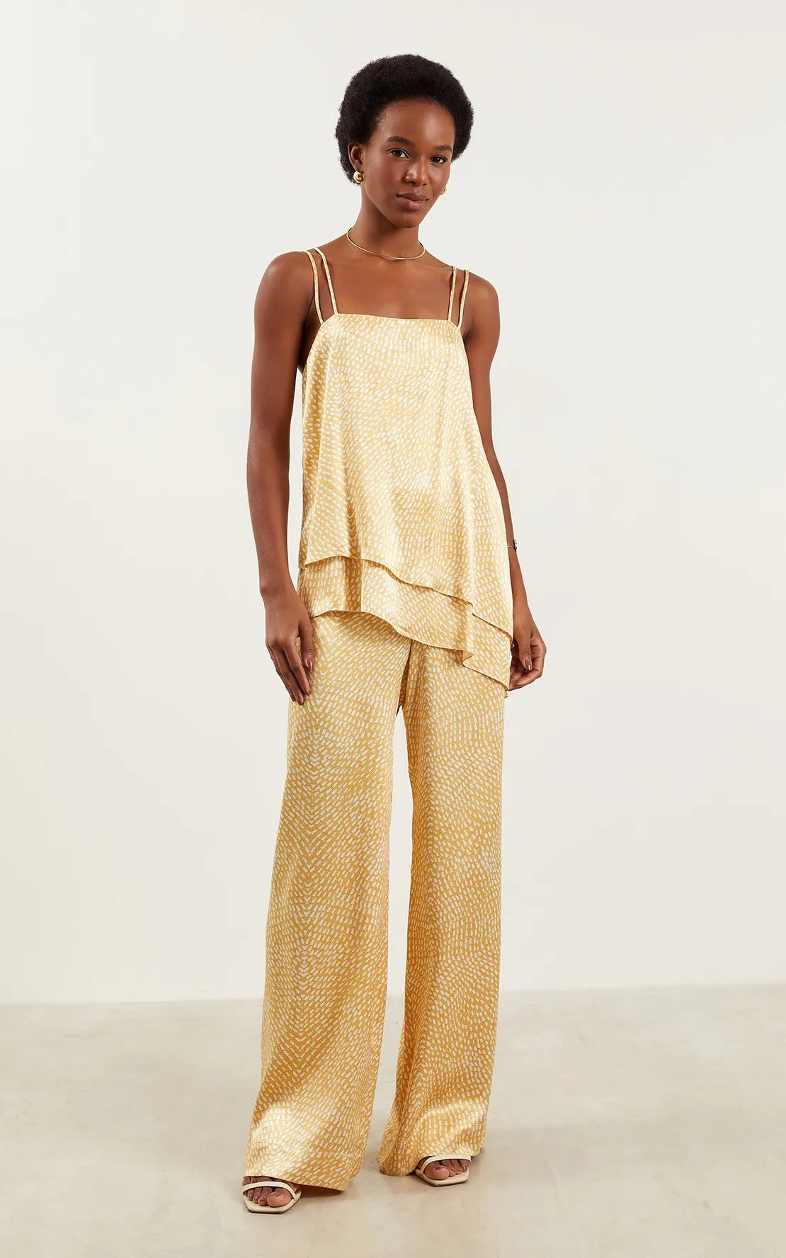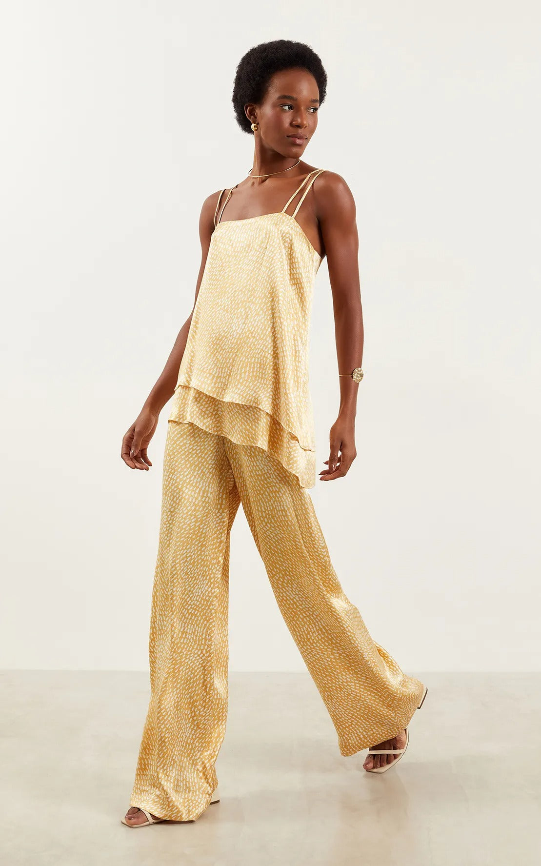 Asymmetric Sun Protection Top And Satin Sun Protection Pants Set