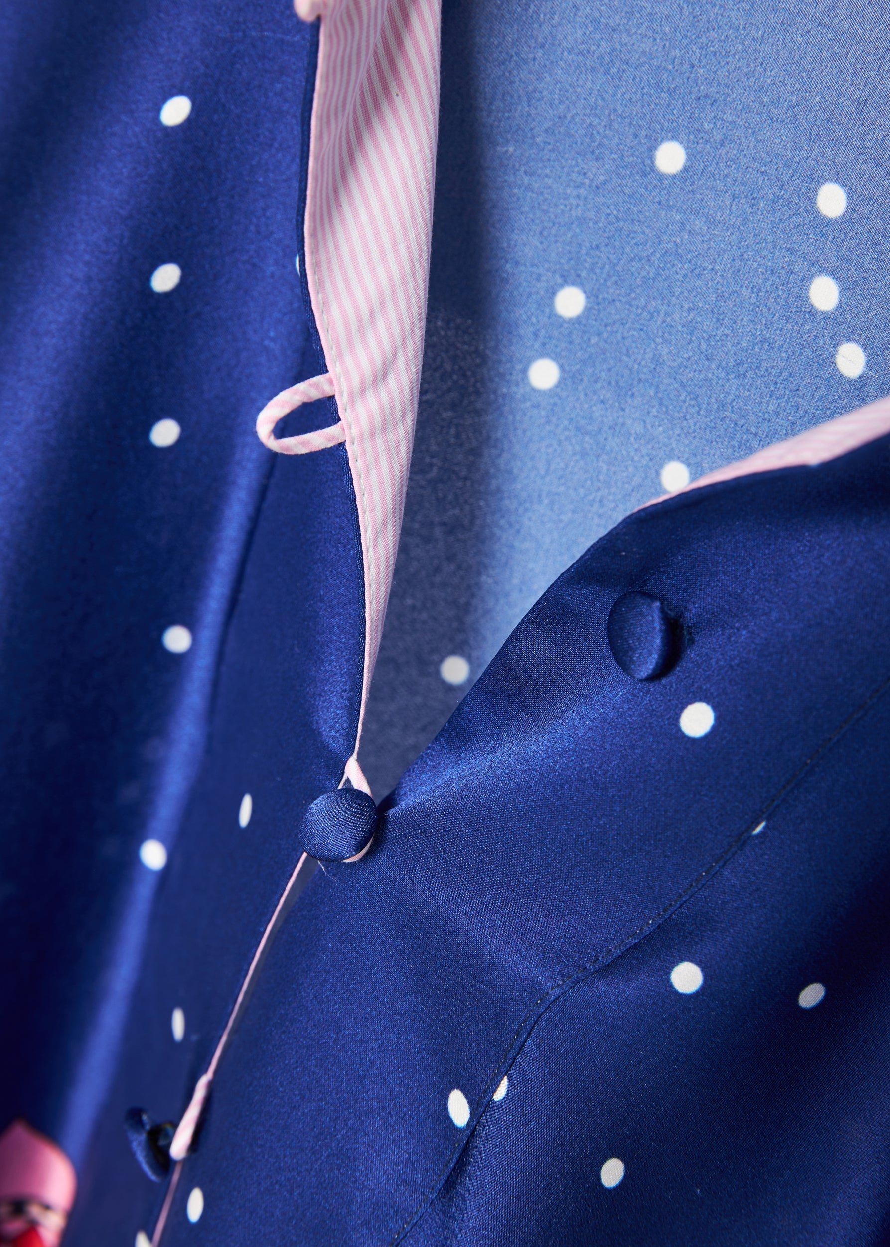 - Design Details: Printed Silk, Cotton Accents, Flowing Silhouette