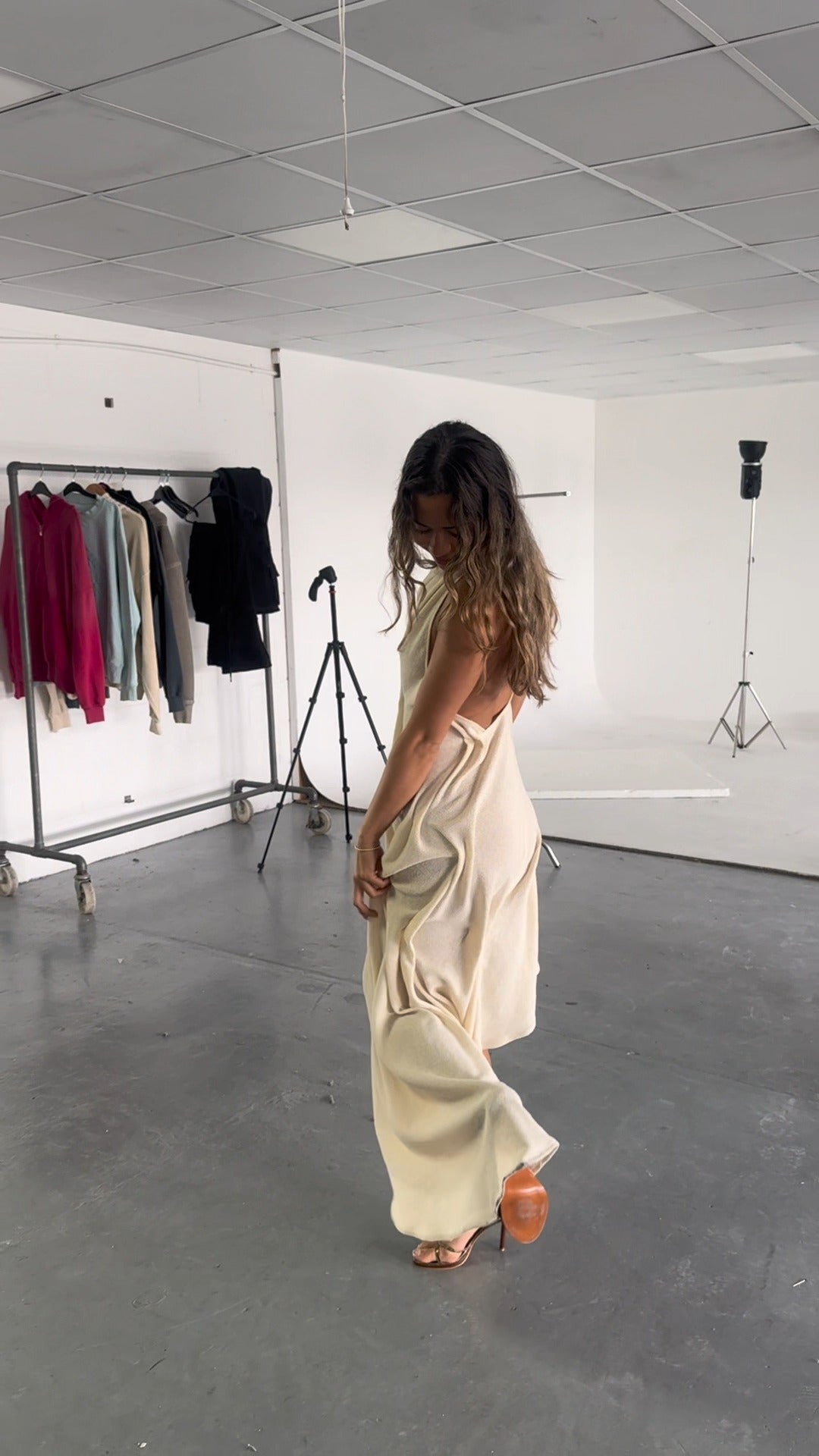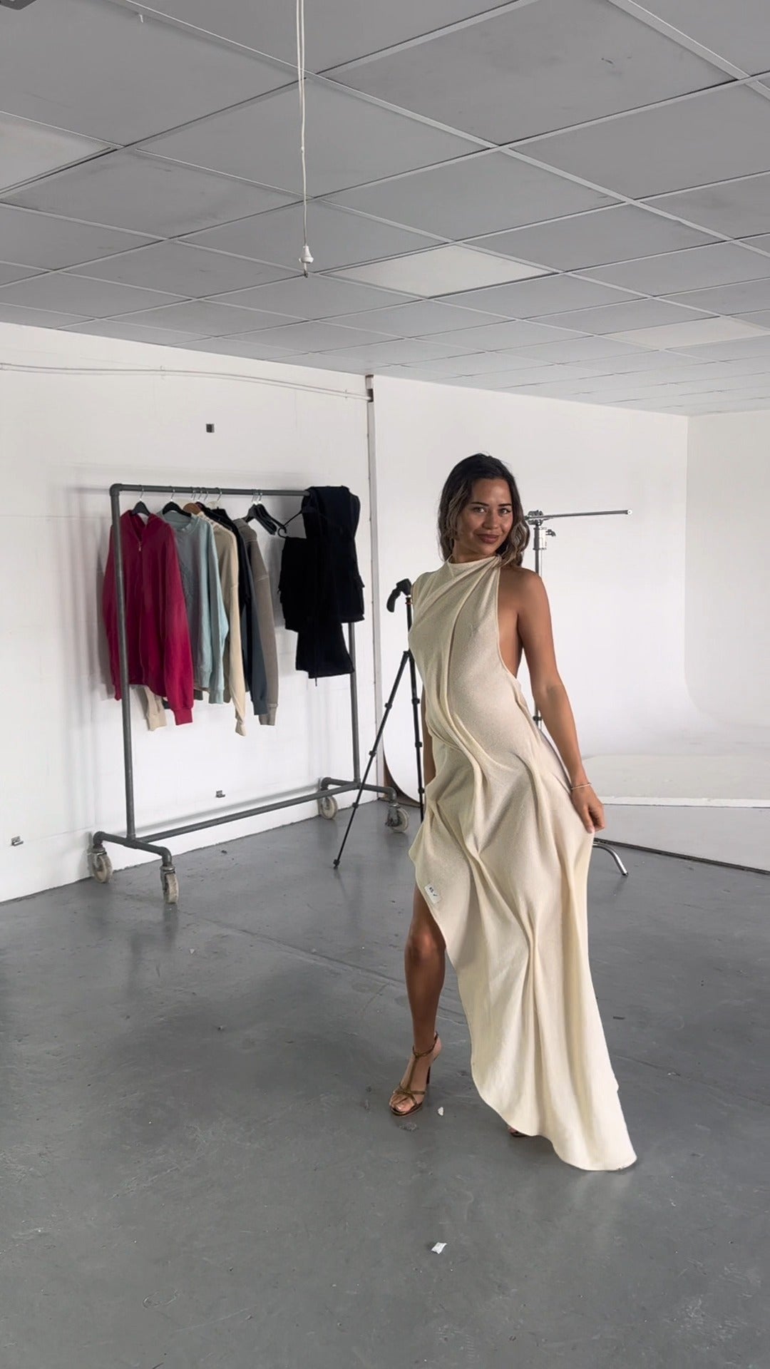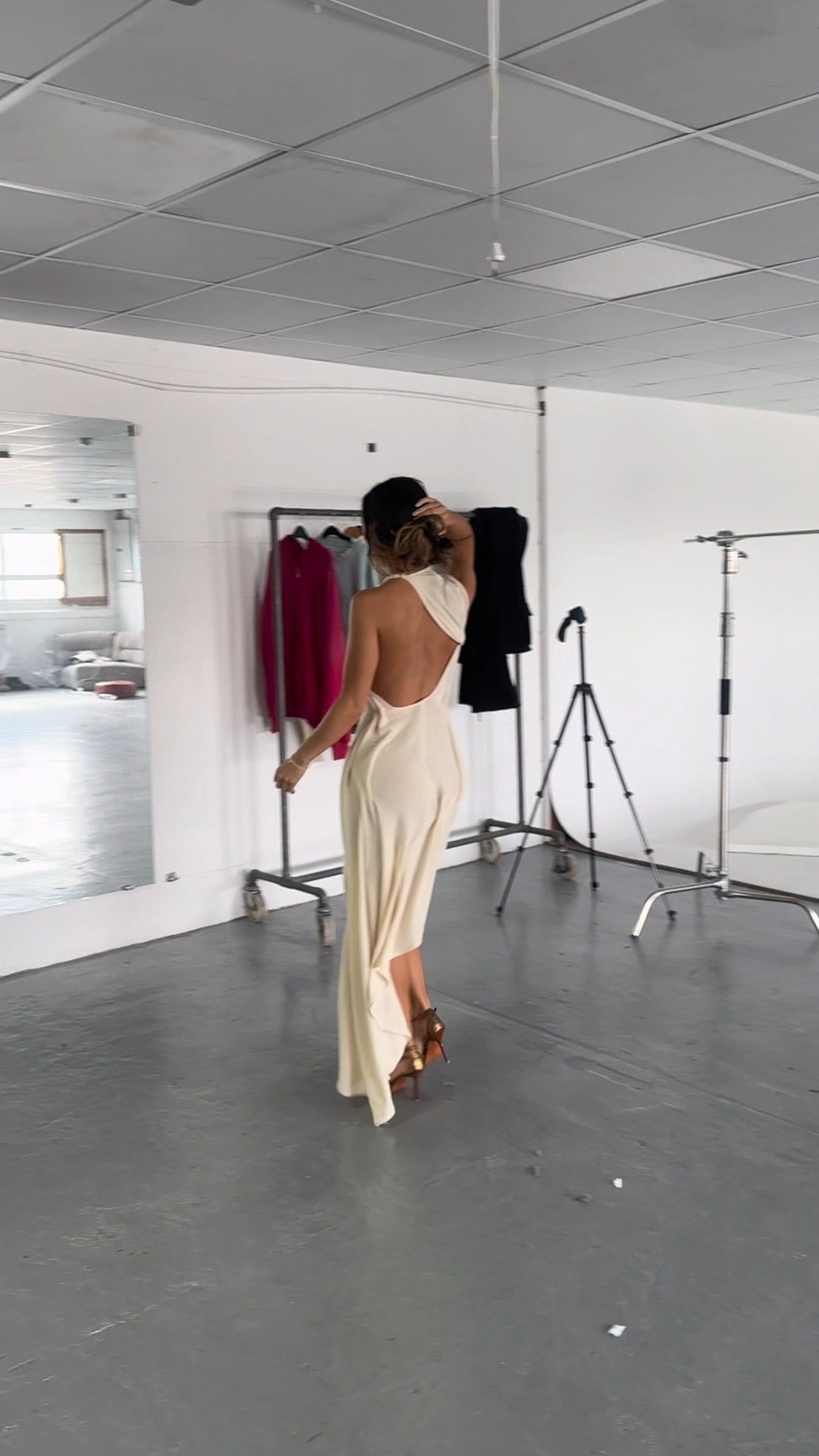Turn heads from every angle in the Isla Dress — a dreamy fusion of soft femininity and bold drama. Featuring an asymmetric hemline, delicate pleats, and an alluring open back, this dress is made to float with grace and captivate in motion.