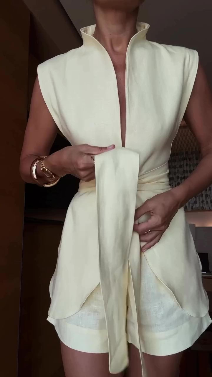 Linen Vest Tie Suit