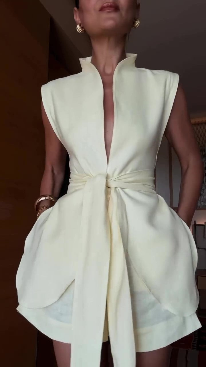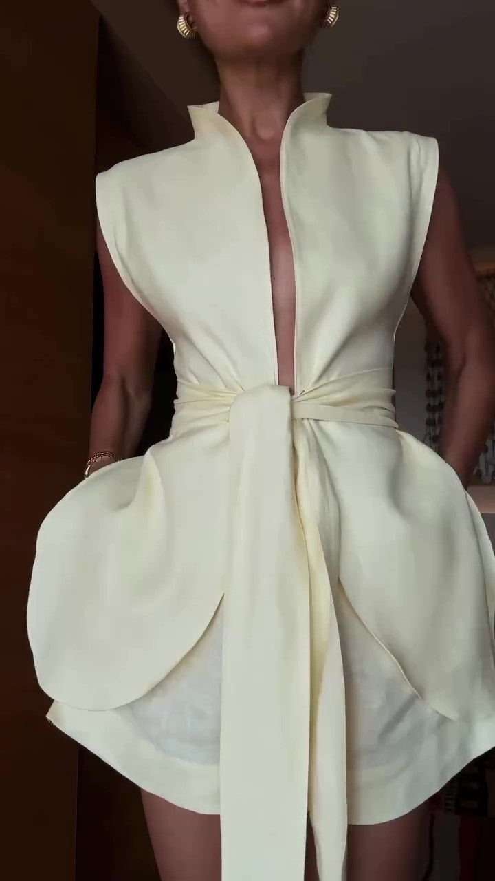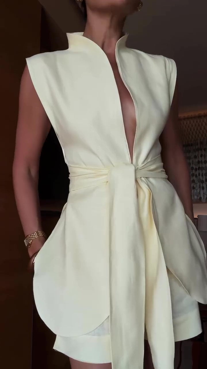 butterfly style high collar vest with waist band detail