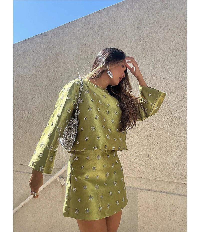 Shine bright this season with our Starburst Satin Two-Piece Set 💫
