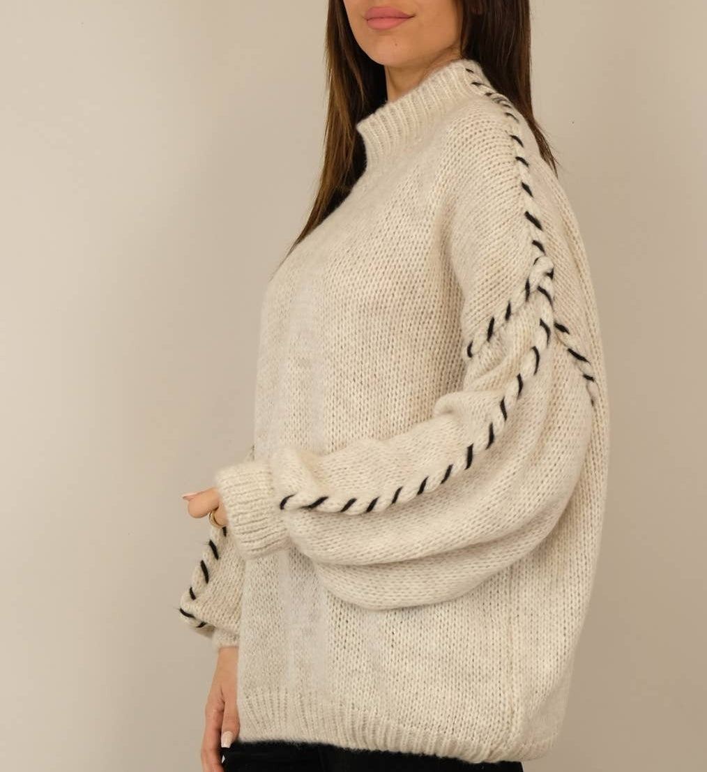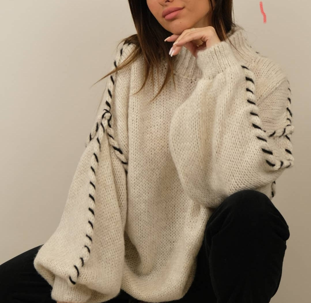 This cosy knitted sweater is made to fit sizes 36-44 EU comfortably. It features stylish balloon sleeves with detailed trim for a unique touch. Available in two beautiful colours, it’s perfect for both casual days and relaxed evenings.