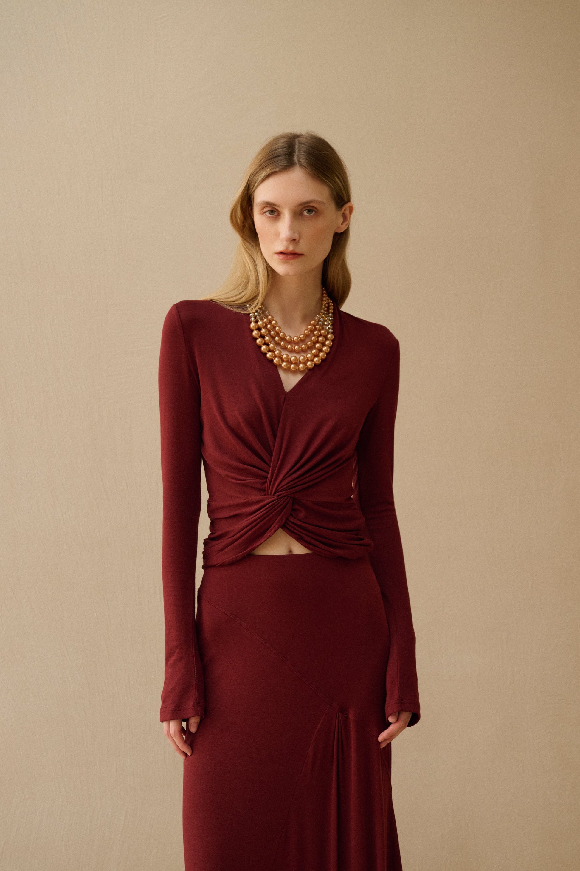 This elegant set features a V-neck top with a stylish front twist hem, perfectly balanced by the sleek mermaid skirt's flared finish.From office days to evening events, it's a study in versatile elegance that transitions effortlessly.